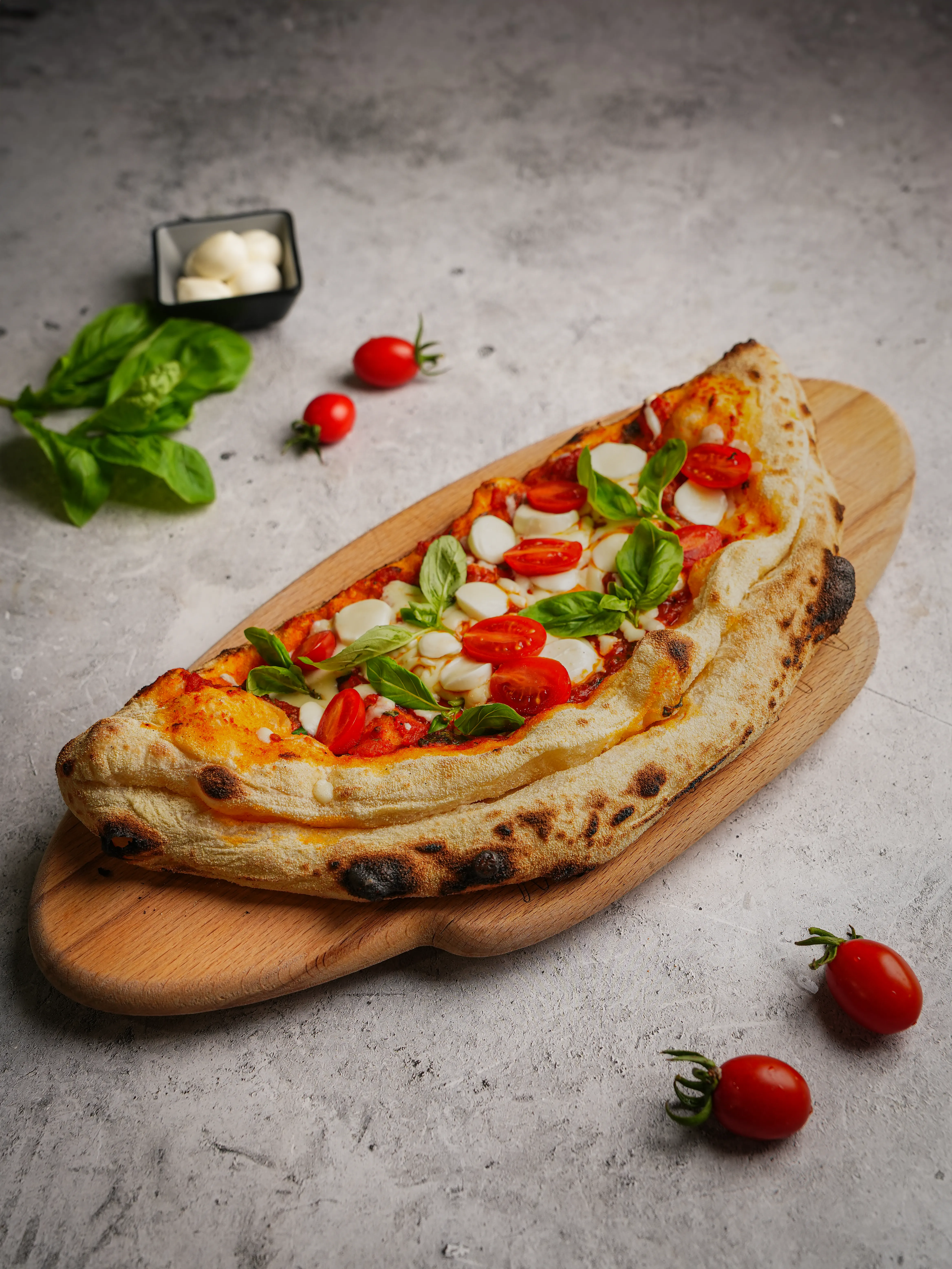 fresh mozzarella, mozzarella, cherry tomatoes, pelati sauce, basil 480 g
